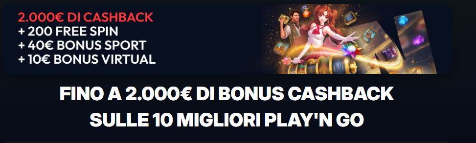 La promozione 2000€ cashback sulle slot Play N Go prevede la restituzione del 50% settimanale fino a 500€ per le prime 4 settimane dalla registrazione sulle perdite registrate giocando a 10 slot del provider Play N Go. Vediamo nel dettaglio i termini del bonus e come sbloccarlo: